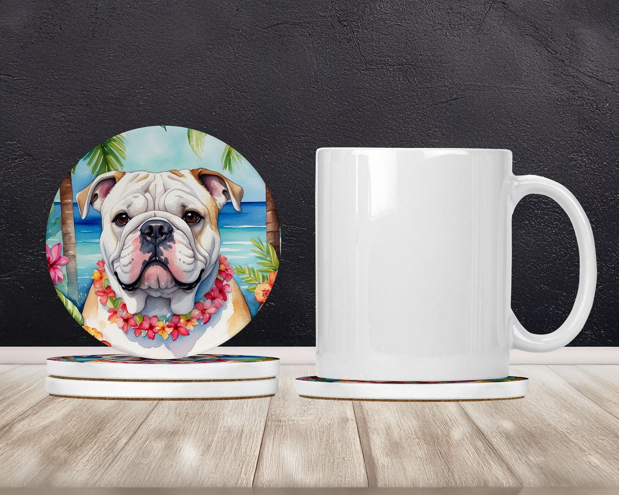 English Bulldog Luau Large Sandstone Coasters Pack of 4 Absorbent Round Coasters Decor Gifts for Men or Women, 4 in, Multicolor