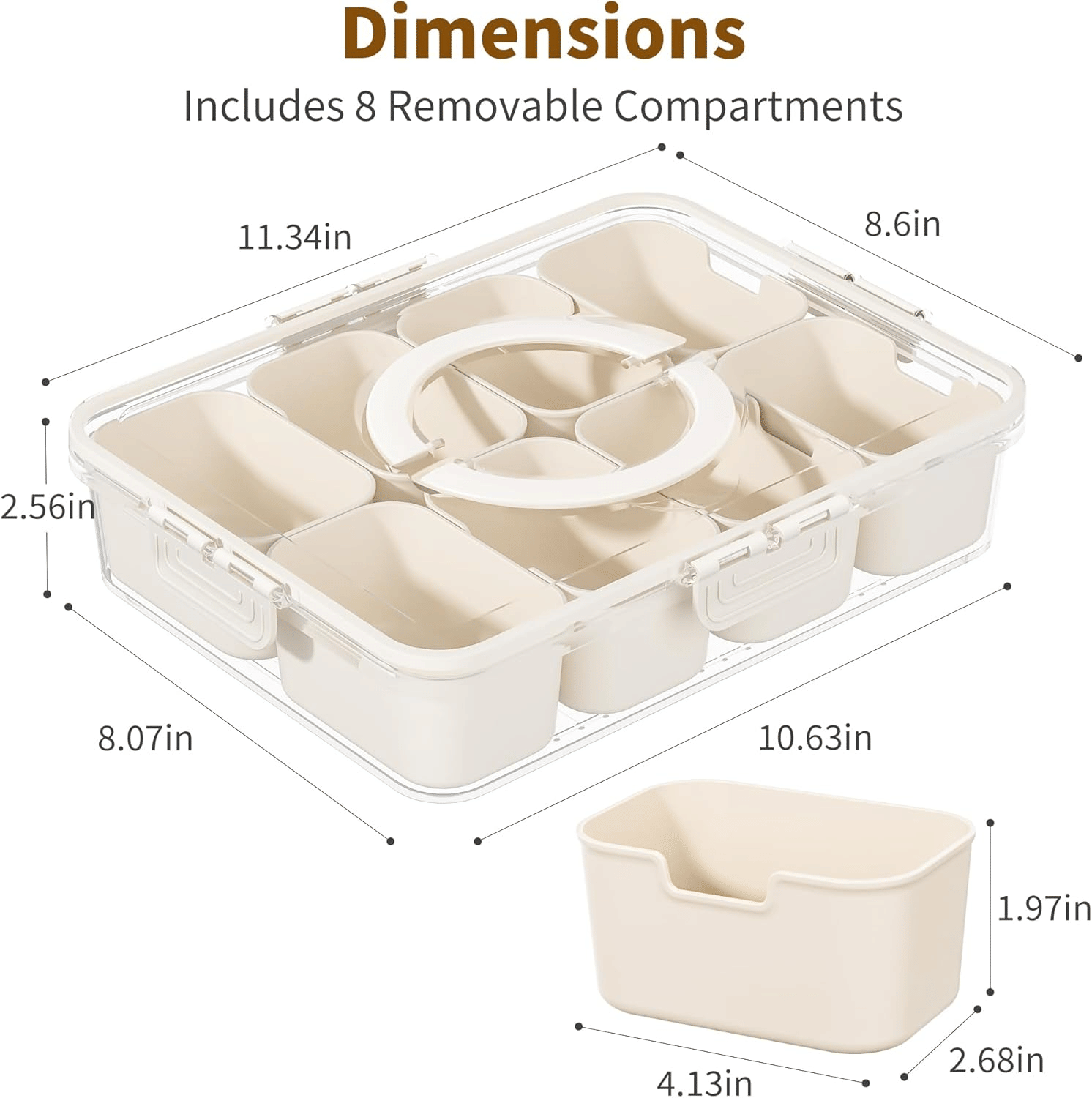 Home > Snackle Box Container, Divided Serving Tray with Lid and Handle, Snack Organizer for Candy, Fruits, Nuts, Snacks, 8 Compartments Snack Box for Travel